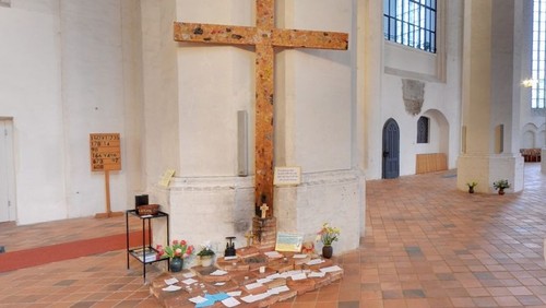 Im Friedensgebet nehmen wir diese fürchterlichen Nöte auf und legen sie, indem wir im Halbkreis vor dem Kreuz sitzen, in der Fürbitte am Kreuz nieder. Wir vertrauen darauf, dass Gott unsere Gebete hört, so wie er auch die vielen kleinen Gebete , die die Menschen im Lauf der Woche auf Zettel schreiben und dort am Kreuz auf die Steine legen. Wir nehmen uns die Nöte, Sorgen und Ängste von betroffenen Menschen ein Stück weit zu Herzen, obwohl wir sie mit ihrem Schicksal gar nicht kennen. Wir nennen sie vor Gott und erbitten seine Hilfe, seinen Trost, seine Kraft für sie alle, die Überlebenden, die Helfenden. Wir beten für Politiker um guten Rat zu verantwortlichem Handeln und gerechte Entscheidungen. Wir beten für Verunglückte, Sterbende, Zerstrittene, für Kinder in der Schule, für Menschen im Urlaub...